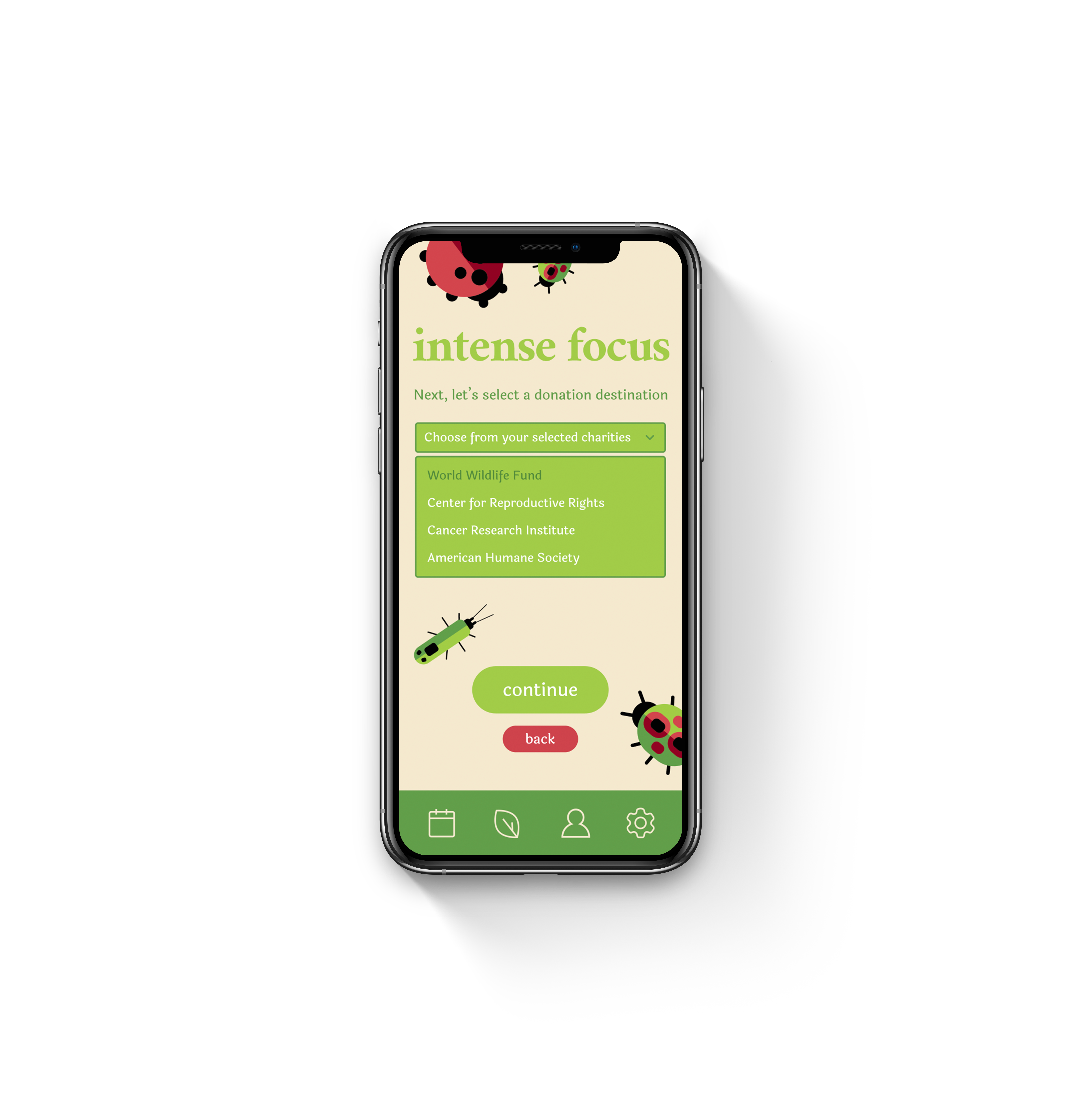 ‘Intense Focus’ is a higher-stakes option when a user can’t afford distractions. They set a time for how long this mode is active, and then they select a non-profit for donations. The function of this option is to motivate the user to stay off their phone because the longer they stay on it, the more of their funds are withdrawn and donated to the non-profit of their choice.