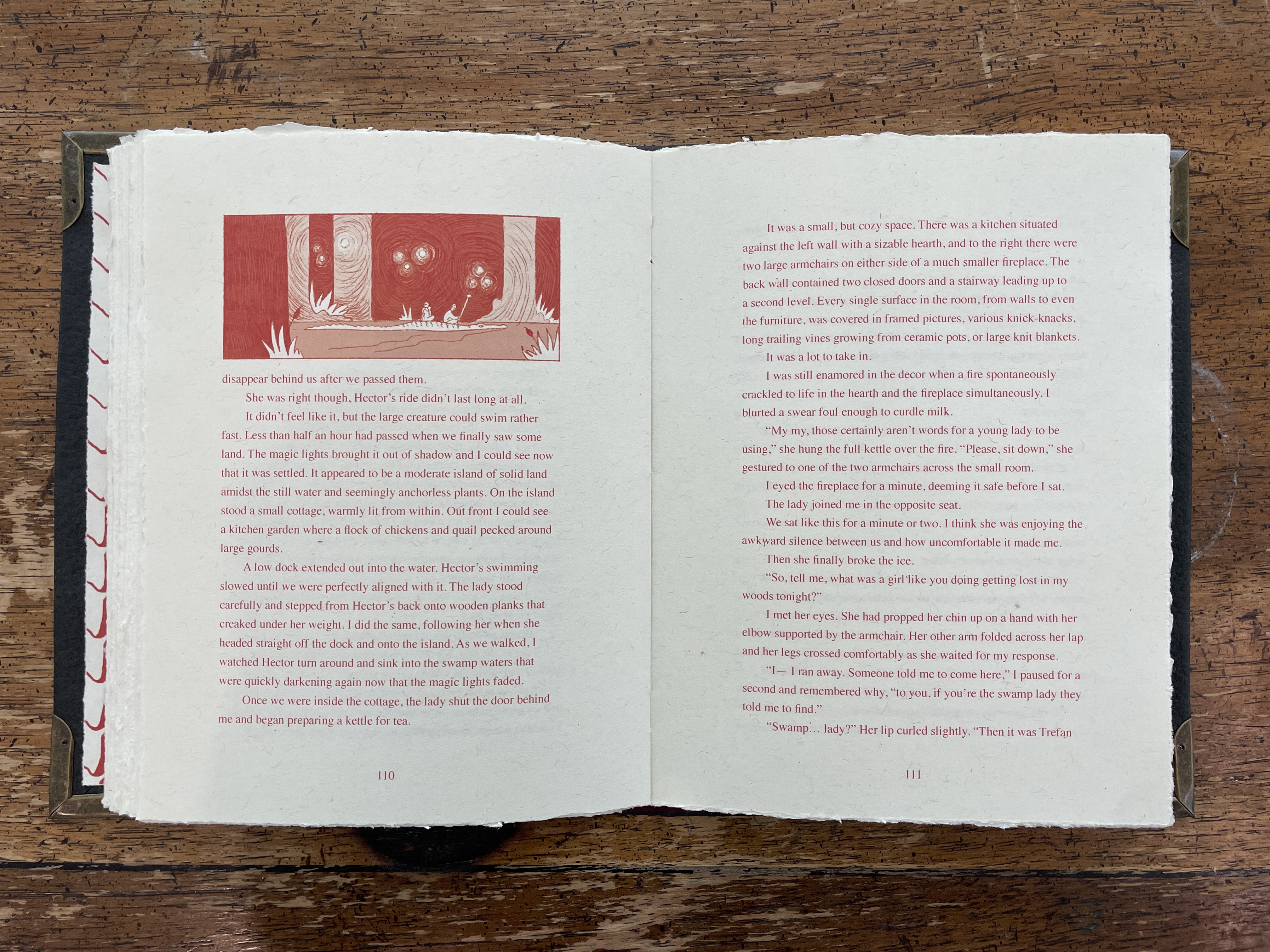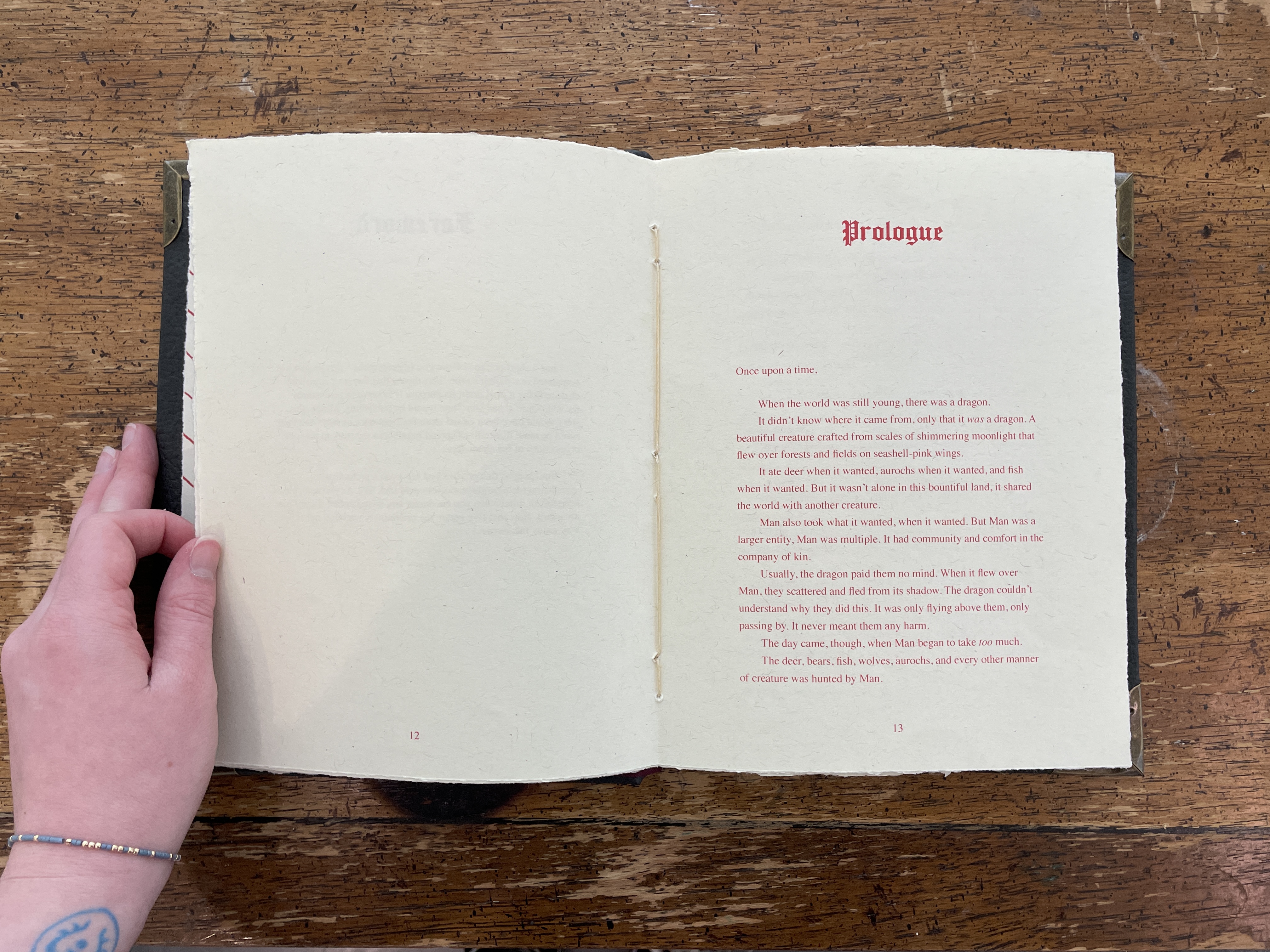 In addition to writing the story, the final book (and research booklets) were hand-bound and the covers were each handmade to construct a ‘storybook’ feel.