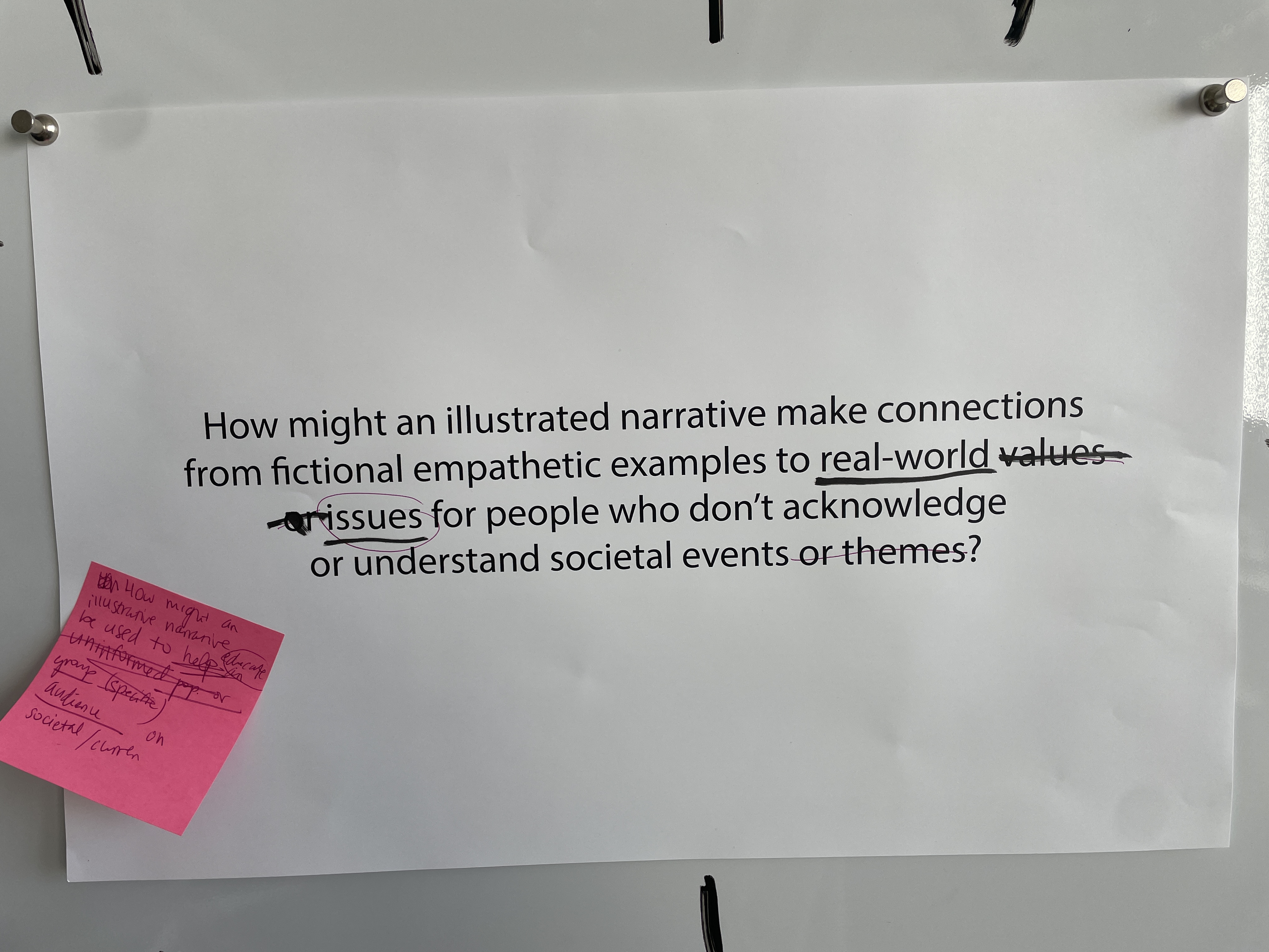 “How might an illustrative narrative evoke empathy for real-world issue in those who could potentially make a difference?”