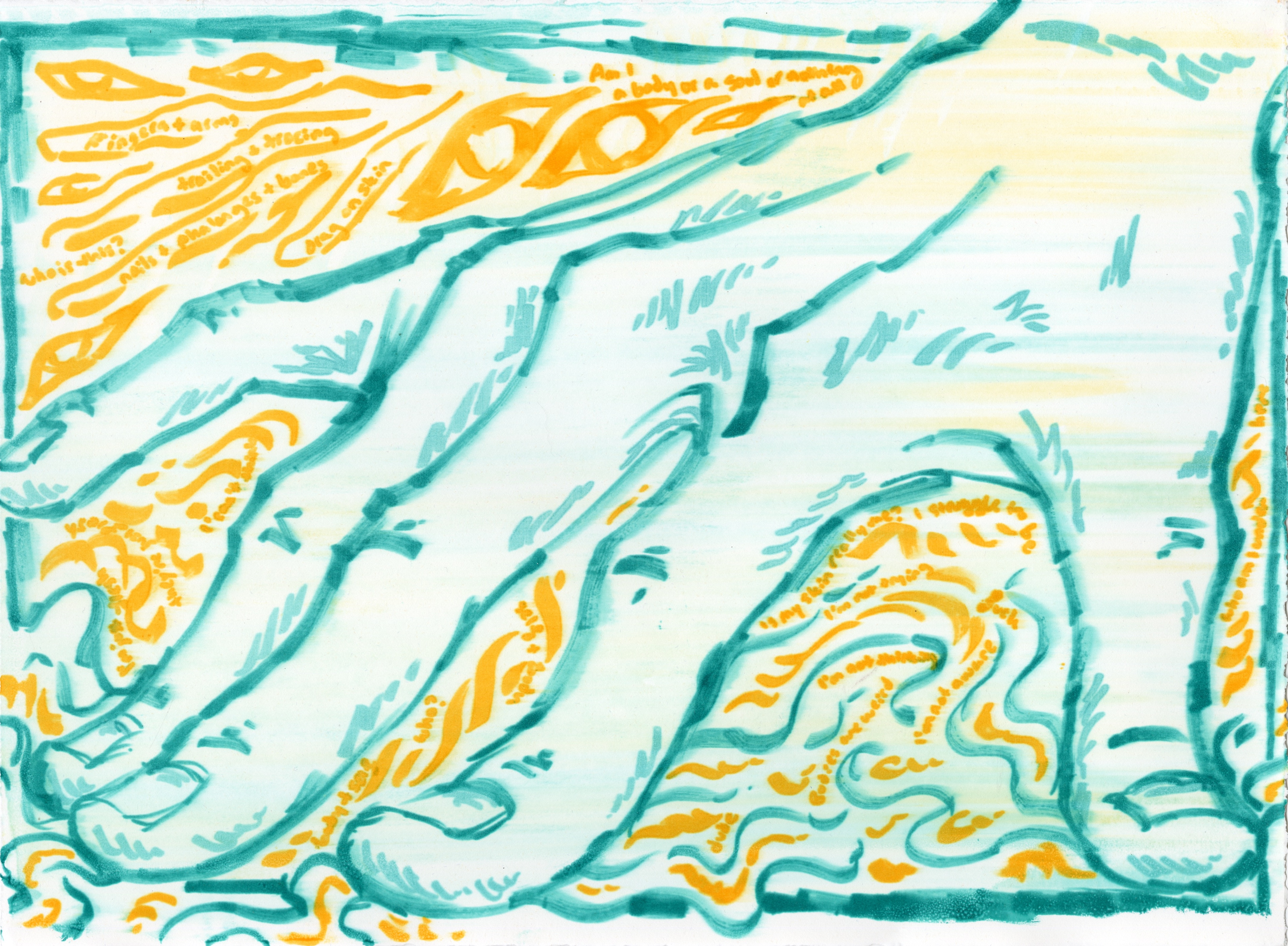 A motion GIF made using a series of watercolor monotypes which were each printed in order and then assembled using Photoshop’s timeline feature.