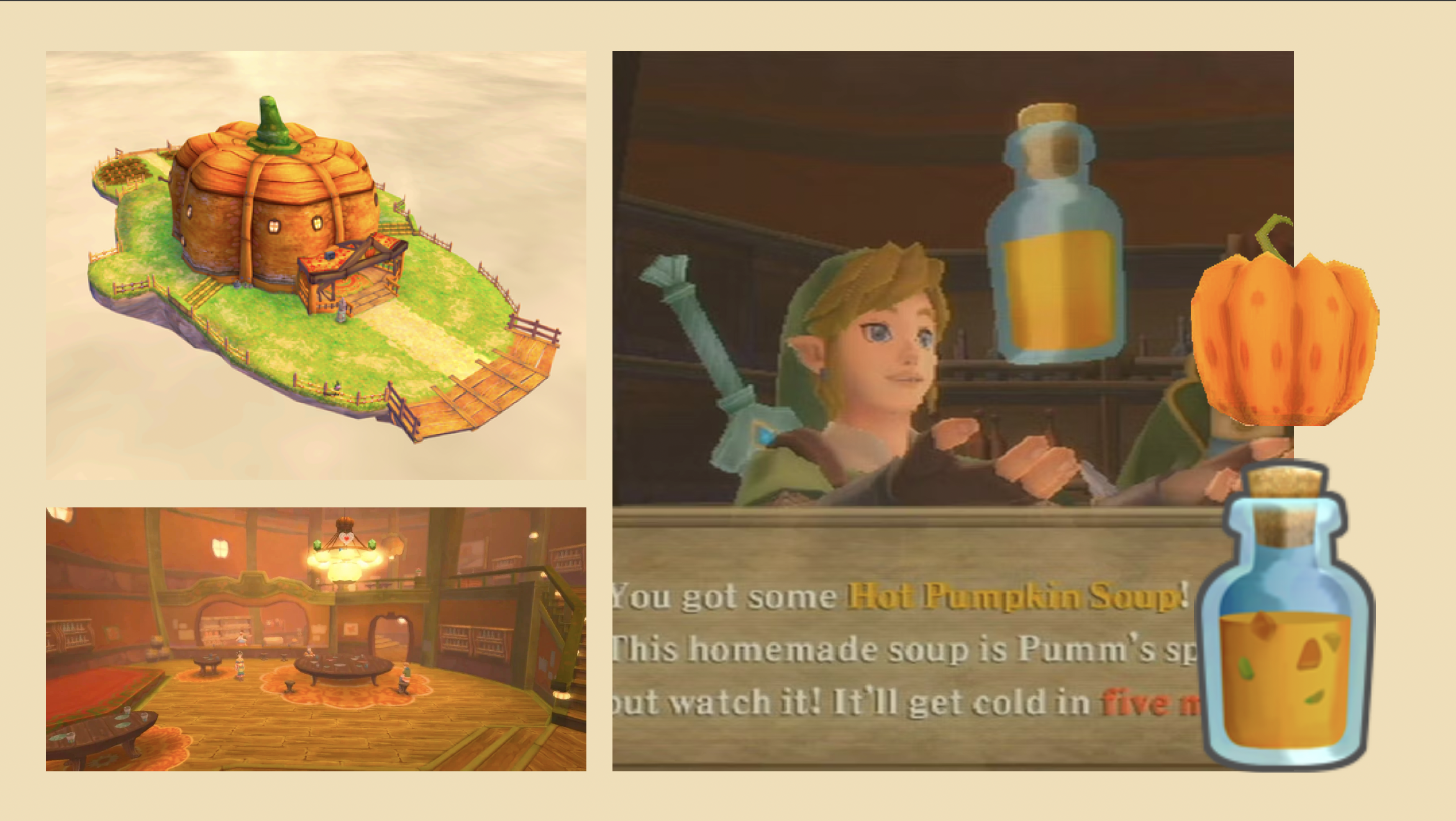 The Lumpy Pumpkin is a local restaurant near the island that sells a pumpkin soup specialty. To promote the Skyloft Identity, a complimentary identity was created for The Lumpy Pumpkin.